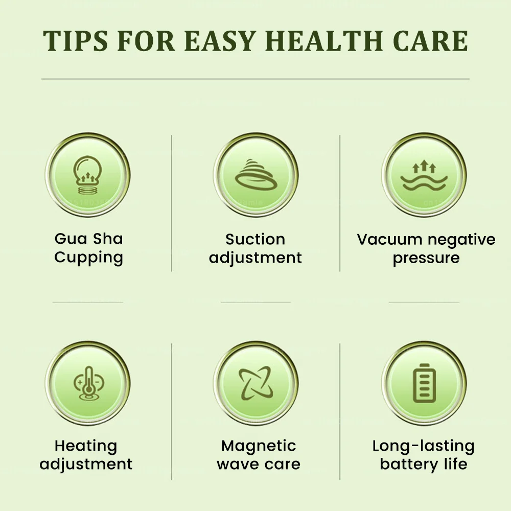 Adjustable Cupping Device Speed Adjustable Suction Levels Electric Vacuum Suction Technology Ergonomic Cup Design for Comfort Multi-Function: Cupping and Scraping Muscle Massage and Pain Relief Portable and Lightweight Construction Easy-to-Use Control Interface Rechargeable Battery Powered Device Durable and High-Quality Materials Suitable for Various Body Areas